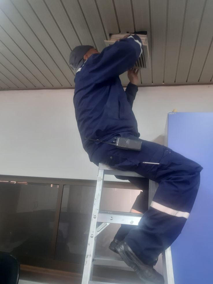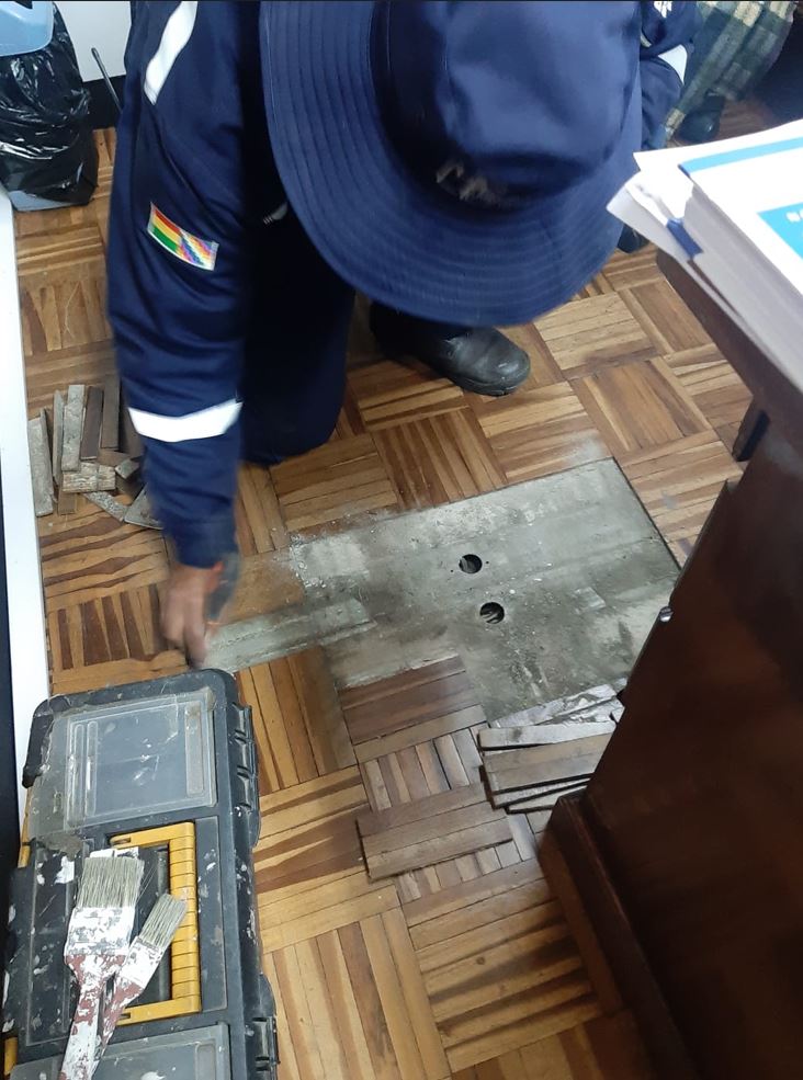 Personal de Serv. Gen realiza trabajos en los ductos de calefacción y pegado de piso parquet en el edificio CCLP.