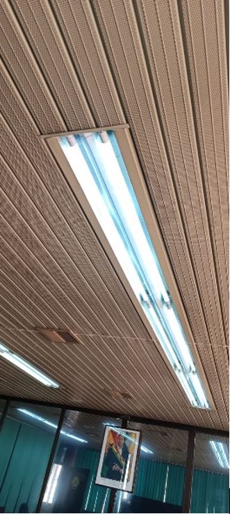 Personal de mantenimiento del CCLP. realizó la, Instalación de pantallas de luminarias piso 10 más colocado de 3 luminarias redondas a roscas.